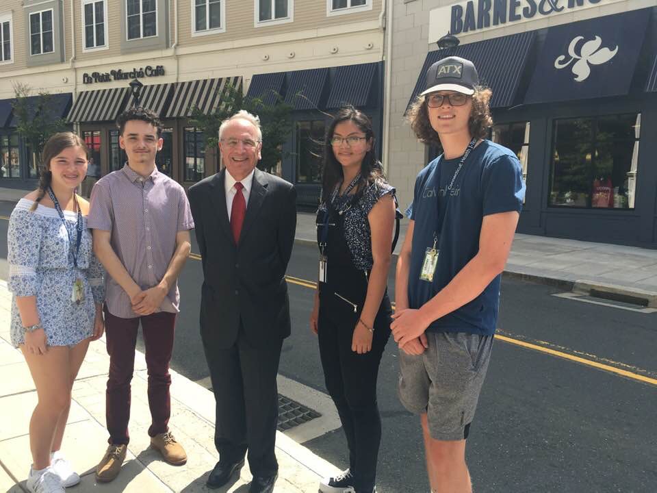 From left, Maeve Cox, Danny Ruiz, Mansfield Mayor Paul Shapiro, Cristina Huisha and Quentin Leahy.