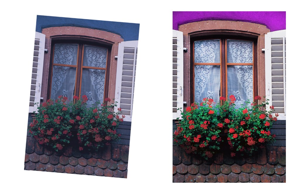 This project required the cropping tool, auto fixing the coloring of the image, and the use of the the lasso tool. First I used the cropping tool to straighten the image and remove the white parts around the image. Secondly I used the auto tone and color options under the image window, continuing by using the dodge and burn tool. Using 3 strokes of the dodge tool to lighten the windows and 2-3 clicks of the burn tool on the roses brightened the red. Lastly I used the lasso tool to change the color of the house to a pink purple.